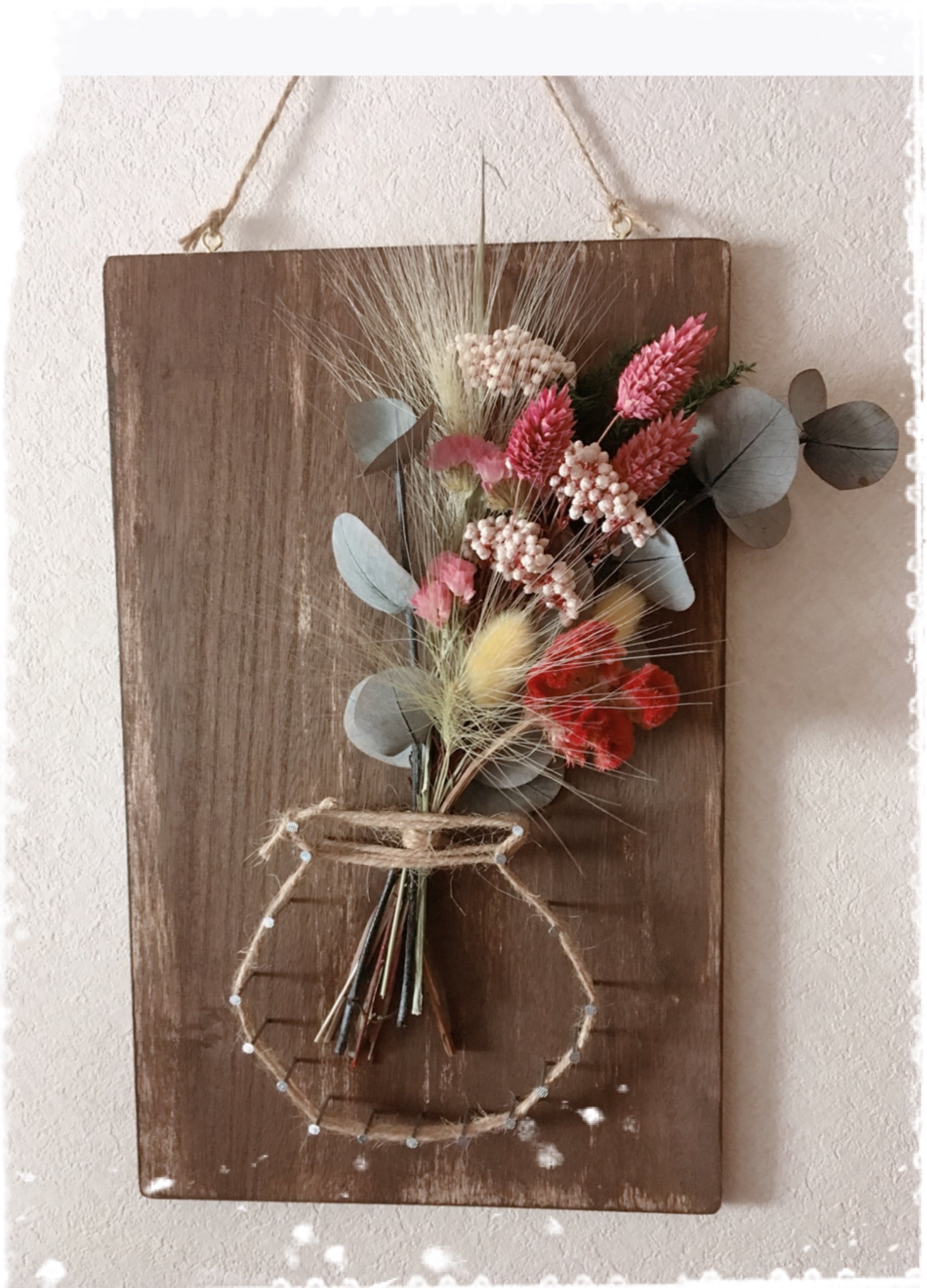 ドライフラワーの生け花風ストリングアート